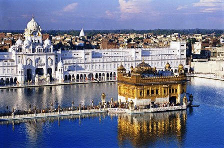 Q7) Which direction is it customary to walk when you enter the main court yard of the Golden Temple?